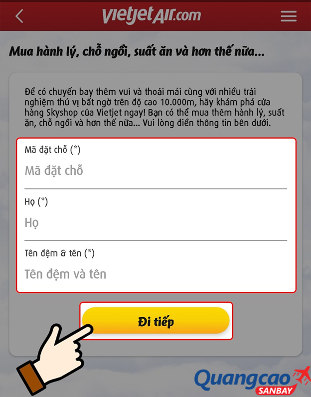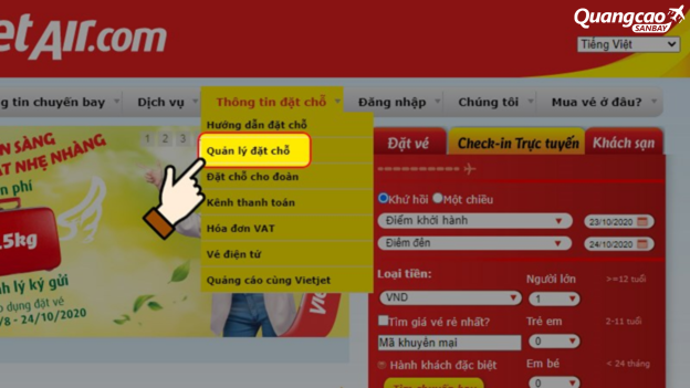 Để mua thêm hành lý qua VietJet Air, hành khách thao tác như sau: